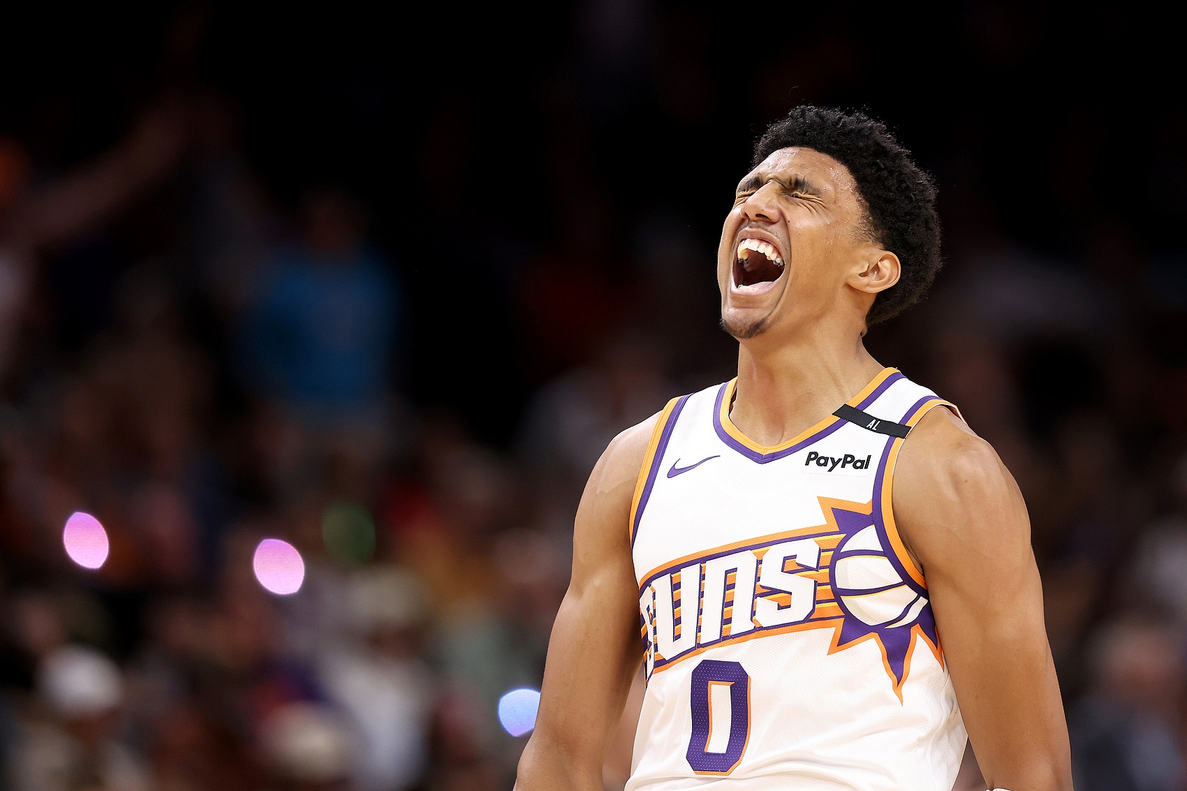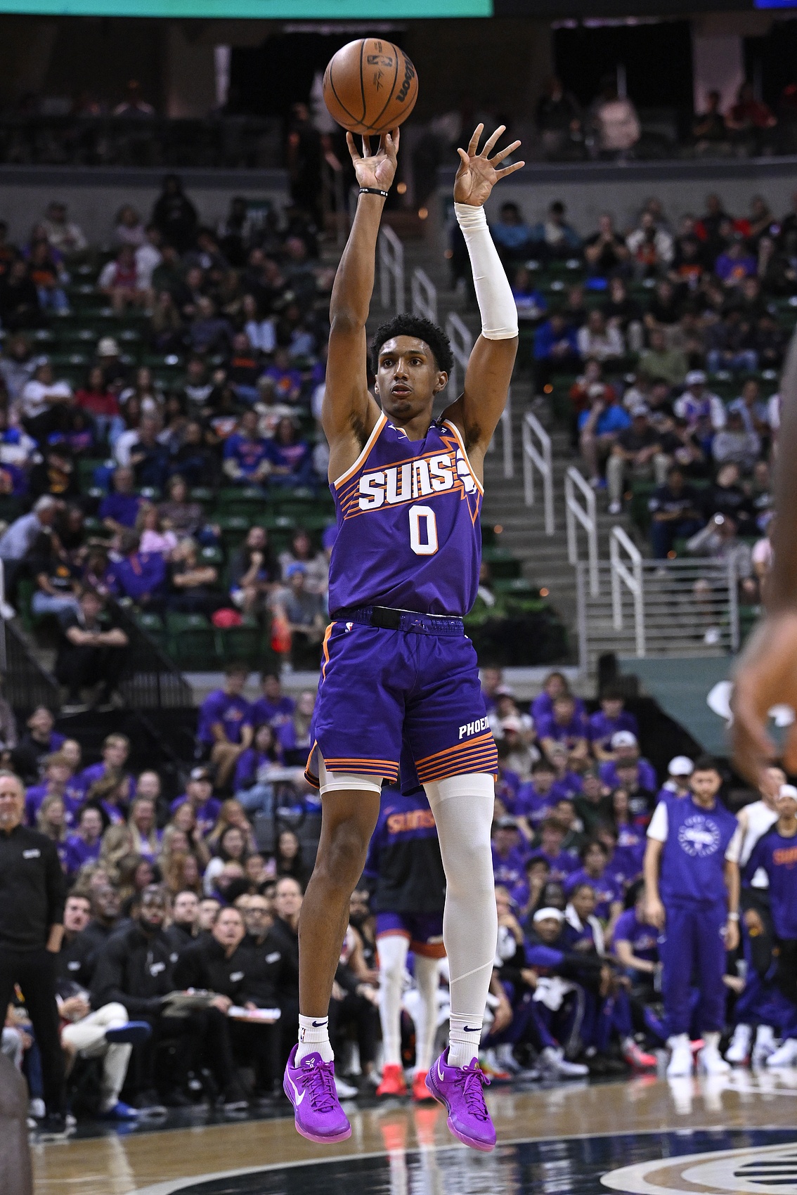 瑞安-鄧恩是2024年的28號秀,他可能不是一位命中率45%的射手——在其21次常規(guī)賽出場中,他的三分命中率為31.6%——但他也不僅是一個“未來潛力股”。目前為止他已經(jīng)為太陽首發(fā)出戰(zhàn)了9場比賽,場均出場17.5分鐘,并且?guī)缀蹩偸侨シ朗貙Ψ阶詈玫耐饩€球員。他防過身高6尺2寸的布倫森和7尺的馬爾卡寧,還在詹姆斯攻筐的時候給他送出了封蓋,對于任何一位21歲的球員來說,這些事情都會令人興奮,更不用說對于一位在大學(xué)時期沒進過主力陣容,直到即將大學(xué)畢業(yè)才被球隊重視的球員了。