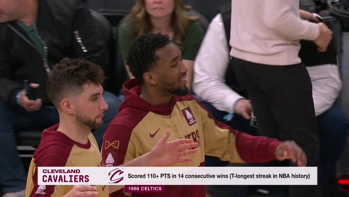 2025-03-10 12:13:15??騎士14連勝且每場得分110+ 平1985-86賽季綠軍所創歷史紀錄