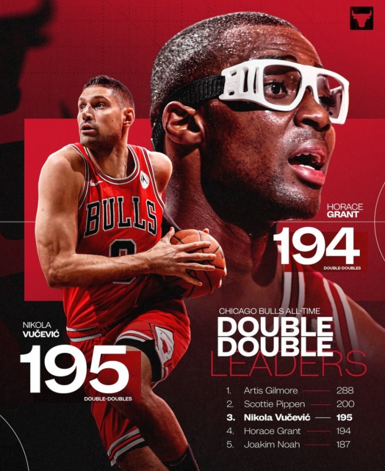 2025-03-11 12:18:05武切維奇公牛兩雙數超越”眼鏡蛇“格蘭特 上升至隊史第三位