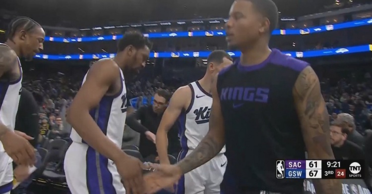 2025-03-14 12:17:52好隊(duì)友!庫(kù)里4000記三分 波杰姆張開雙臂與TJD等人久久不肯坐下~