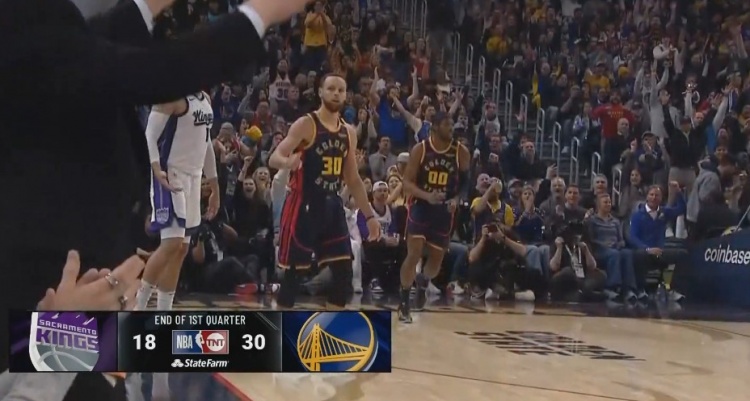 2025-03-14 12:19:20箭如雨下!勇士首節7記三分球30-18領先國王12分