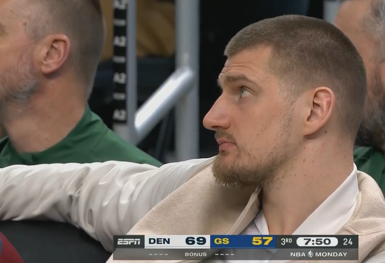 2025-03-18 12:21:43舒服~殘陣掘金領先勇士兩位數 場下的約基奇一臉淡定~