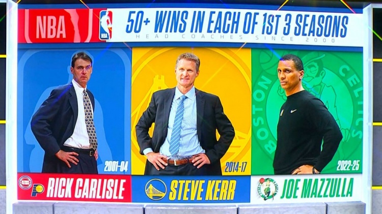 2025-03-19 18:22:57夢幻開局!生涯前3個賽季皆50+勝場的主帥:卡萊爾、科爾、馬祖拉