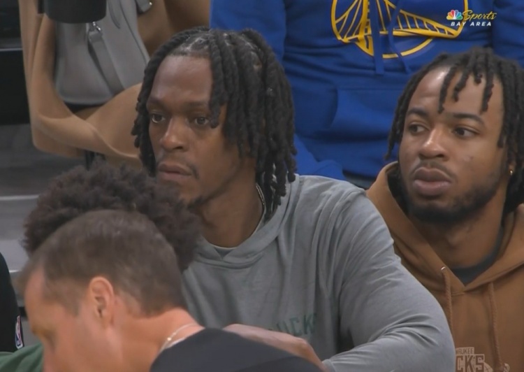 2025-03-19 18:25:07好久不見!隆多梳著臟臟辮 在雄鹿替補席觀戰比賽