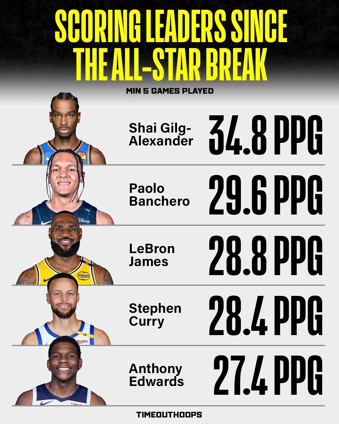 2025-03-19 18:26:47全明星后得分榜:鴨梨34.8分斷檔第一 班凱羅第二 詹庫分列三四位