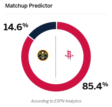 2025-03-23 18:25:32約基奇缺陣!火箭10連勝穩了?ESPN預測明日勝率:火箭高達85.4%