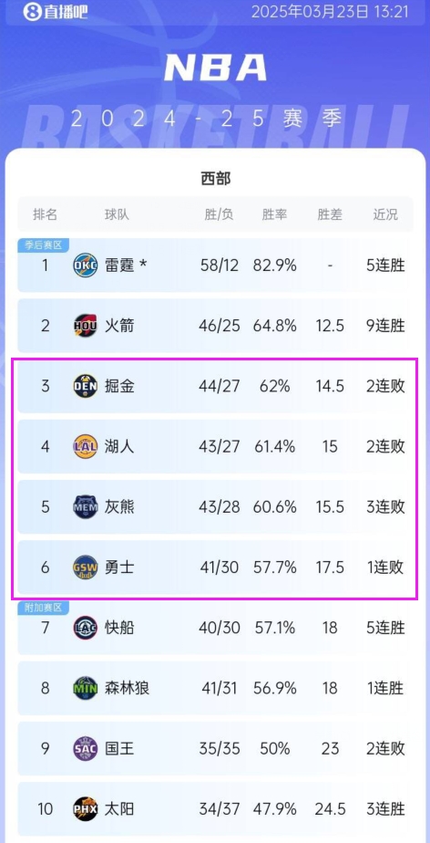 2025-03-23 18:26:33??火箭9連勝穩居西區第2 掘湖熊勇都輸球 快船森林狼追擊直通區