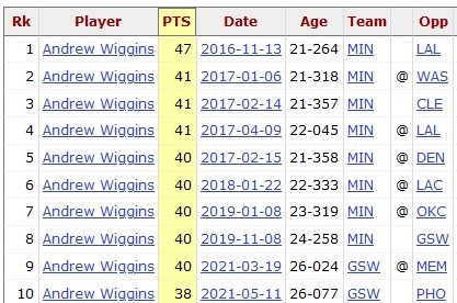2025-03-24 18:50:00維金斯本場(chǎng)42分創(chuàng)個(gè)人生涯第二高 生涯前十全部40+&森林狼占8次