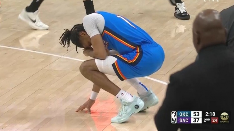 2025-03-26 12:27:04暈乎了!以賽亞-喬和埃利斯爭搶球 被后者坐到臉部貼地&下場檢查
