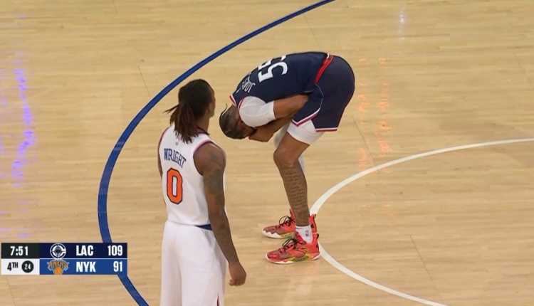 2025-03-27 12:33:58阿隆-戈登眉角流血&有很明顯的傷口 目前3犯在場下休息