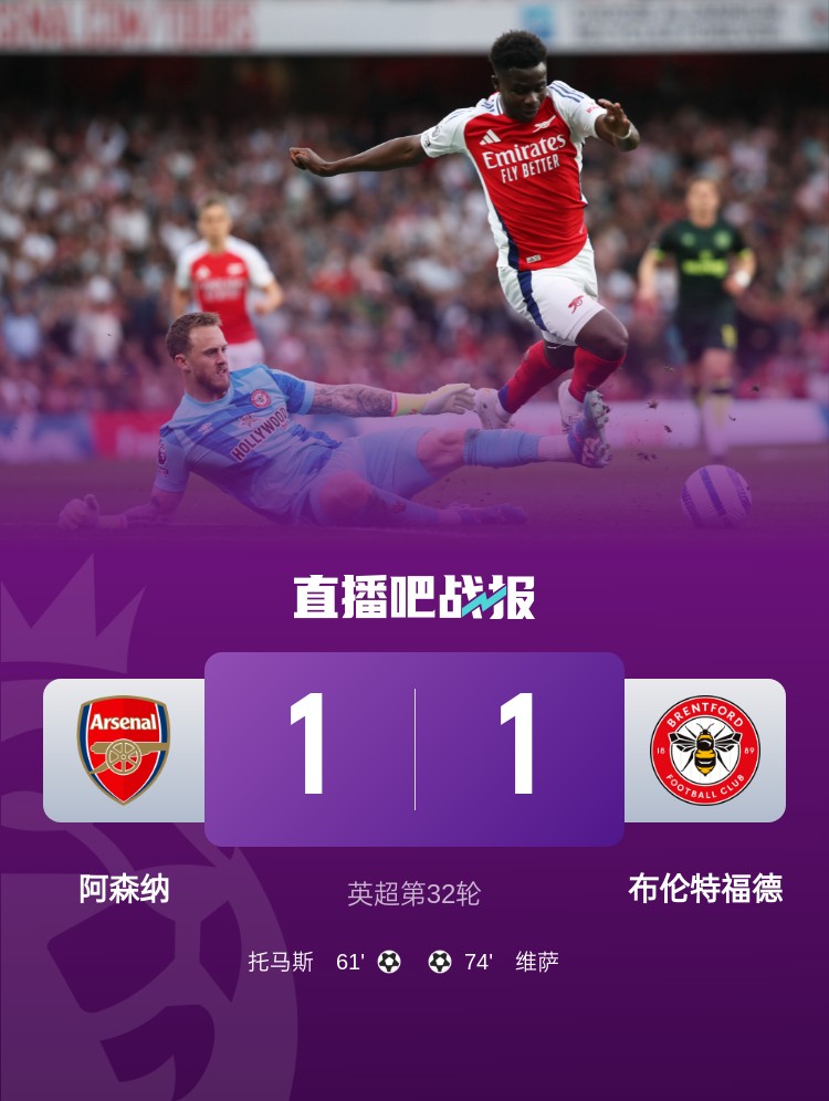 2025-04-13 13:55:31早報:阿森納1-1布倫特福德,利物浦再拿9分即鎖定冠軍