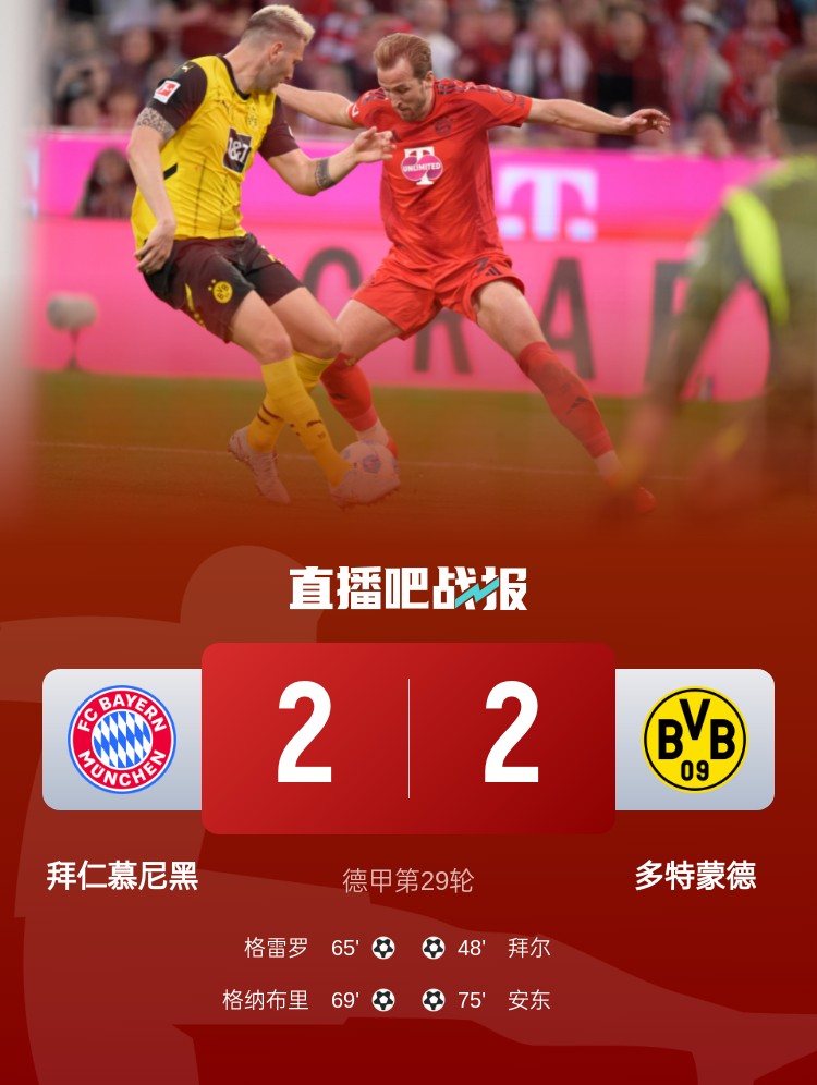 德甲第29輪,拜仁2-2戰平多特蒙德,格納布里一條龍破門,金玟哉失誤。