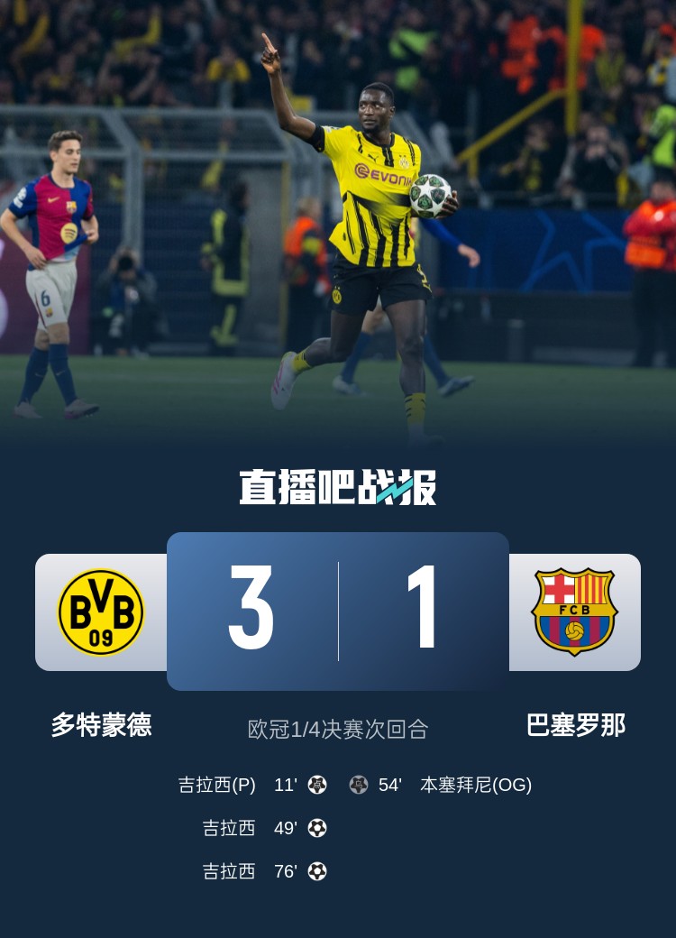 2025-04-16 06:02:45吉拉西是首位歐冠對陣巴薩戴帽非洲球員,單賽季對巴薩進5球最多