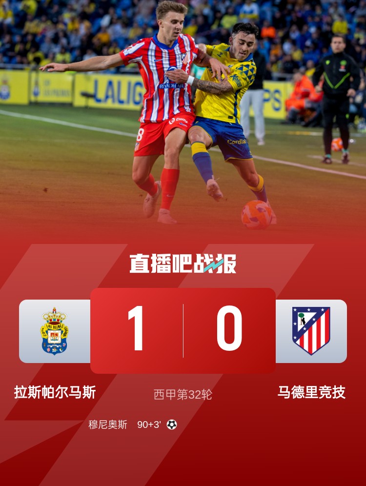 西甲聯(lián)賽第32輪,馬競客場0-1遭拉斯帕爾馬斯絕殺,落后巴薩10分。