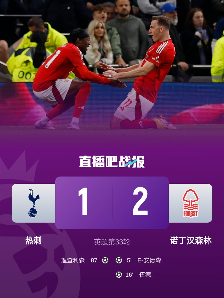2025-04-22 12:00:06蛻變!森林去年33輪后僅高降級區1分,現積分翻倍英超第3爭歐冠