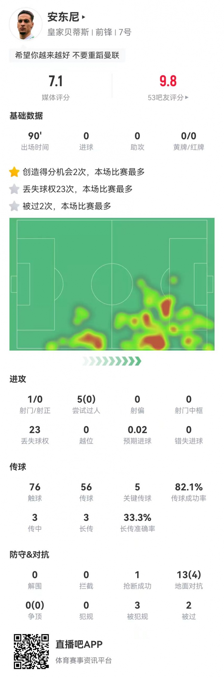 2025-03-10 06:00:22安東尼本場5關(guān)鍵傳球+2造良機(jī)+3造犯規(guī) 5過人0成功+23丟失球權(quán)