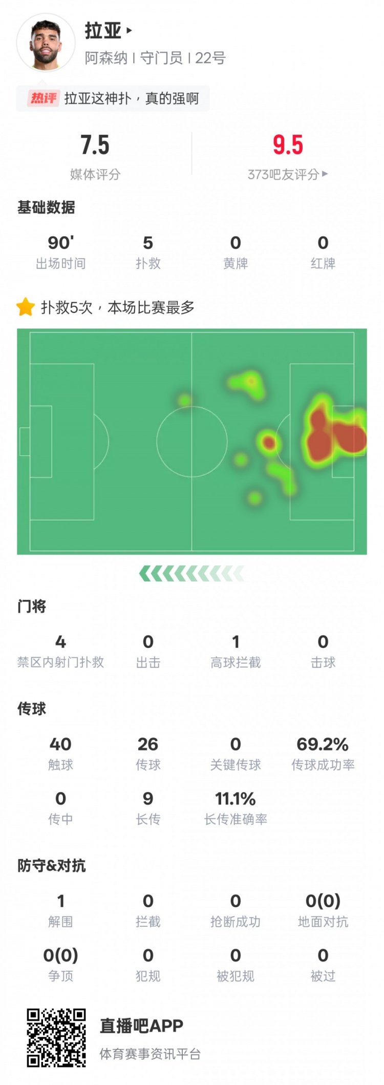 2025-03-10 06:00:50拉亞本場數據:5次撲救全場最多&4次撲救對手禁區內射門,評分7.5