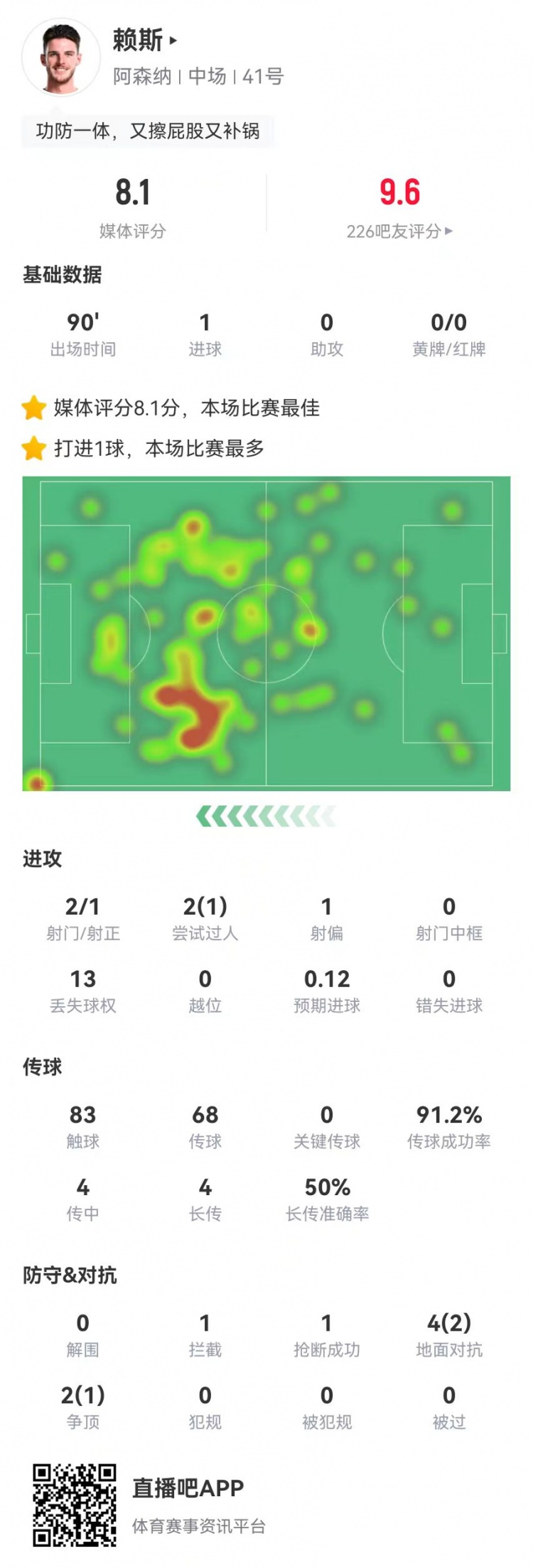 2025-03-10 06:00:53賴斯本場1球+1救險 6對抗3成功 4傳中0成功 獲評8.1分全場最高