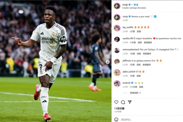 2025-03-10 06:01:06維尼修斯社媒慶祝勝利:讓我們繼續(xù)前進(jìn)贏得更多!