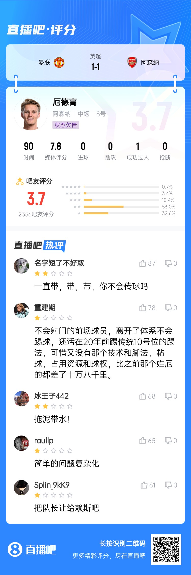 2025-03-10 12:01:20惹眾怒?厄德高被集火:看著很忙啥也沒干 拿他比B費是對B費不敬