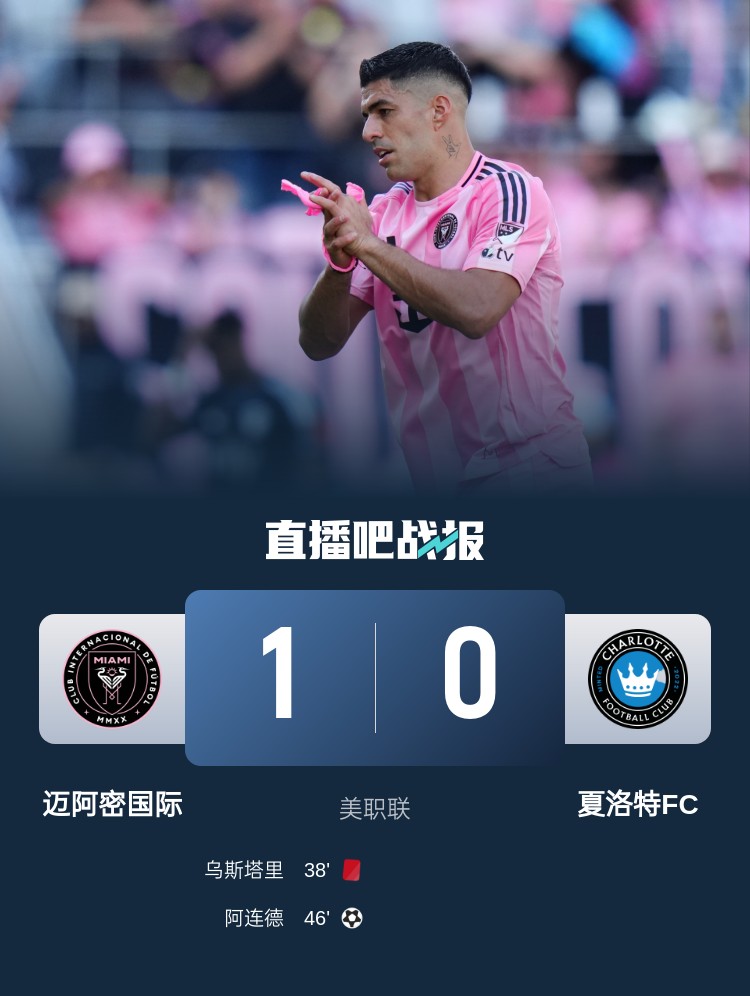 美職聯本輪邁阿密國際1-0擊敗夏洛特FC,梅西替補未出場,阿連德破門,蘇亞雷斯助攻。