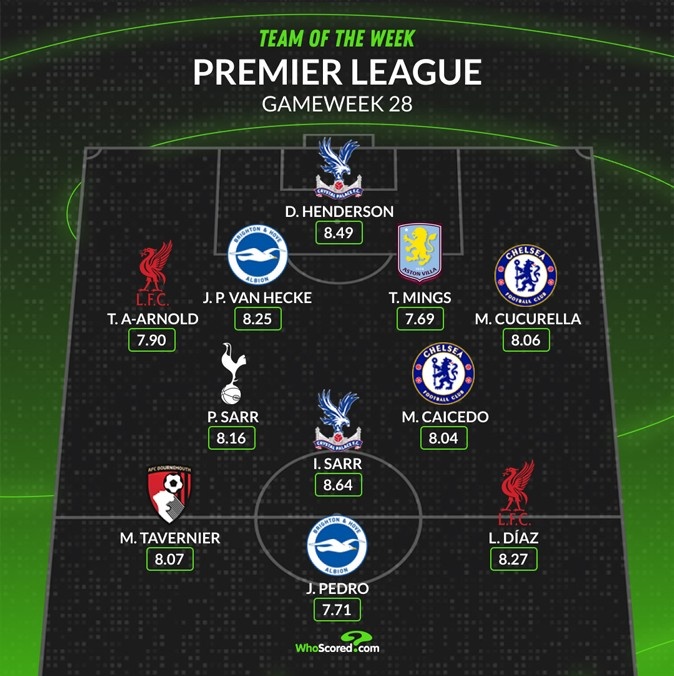 2025-03-11 18:00:09whoscored本輪英超最佳陣:迪亞斯&阿諾德領銜,凱塞多&庫庫在列