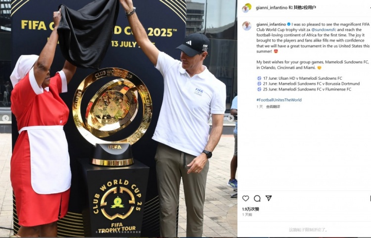 2025-03-11 18:00:35因凡蒂諾:很高興看到世俱杯獎杯首次抵達熱愛足球的非洲大陸
