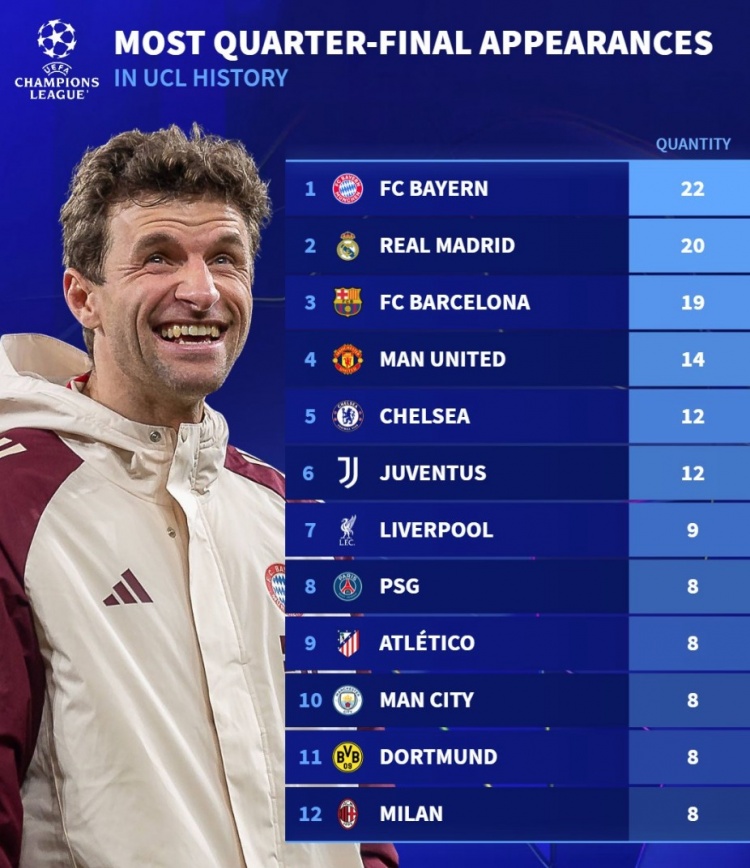 2025-03-12 00:06:37改制后歐冠共12支球隊至少8次晉級八強:仁皇薩前3,魔車文進前6