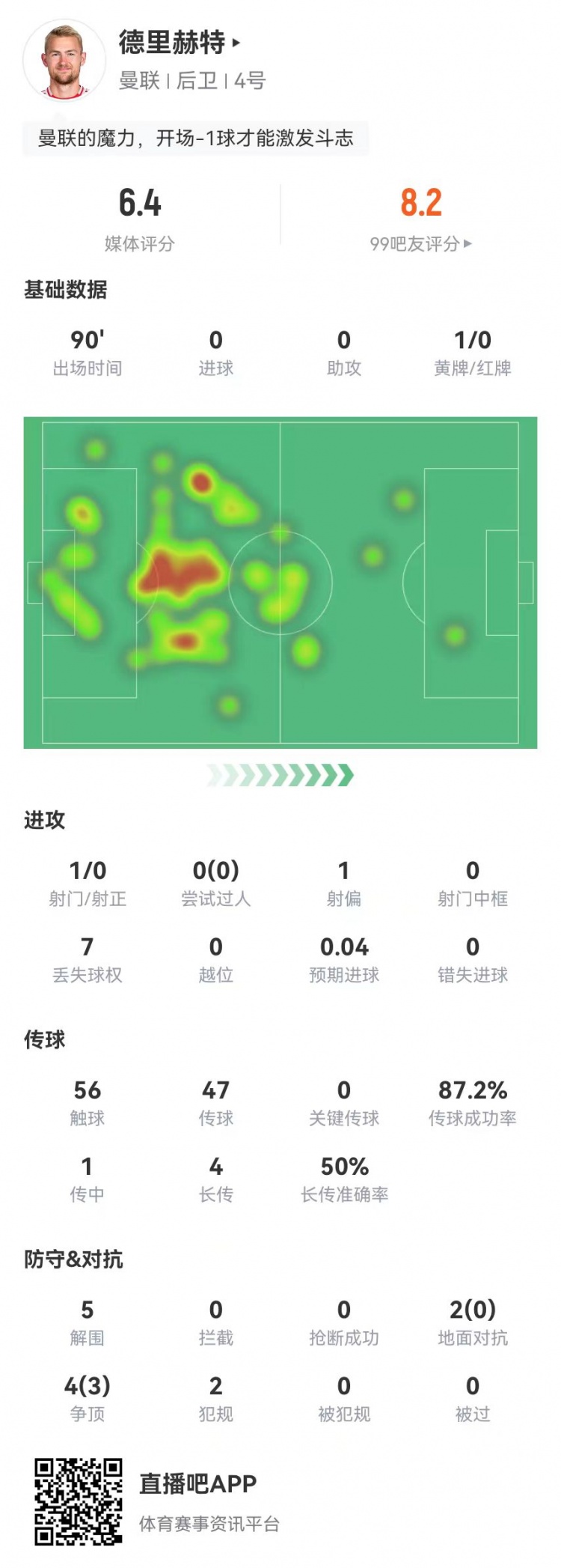 2025-03-14 12:00:44德里赫特本場5解圍1封堵1送點 6對抗3成功 獲評6.4分全隊最低