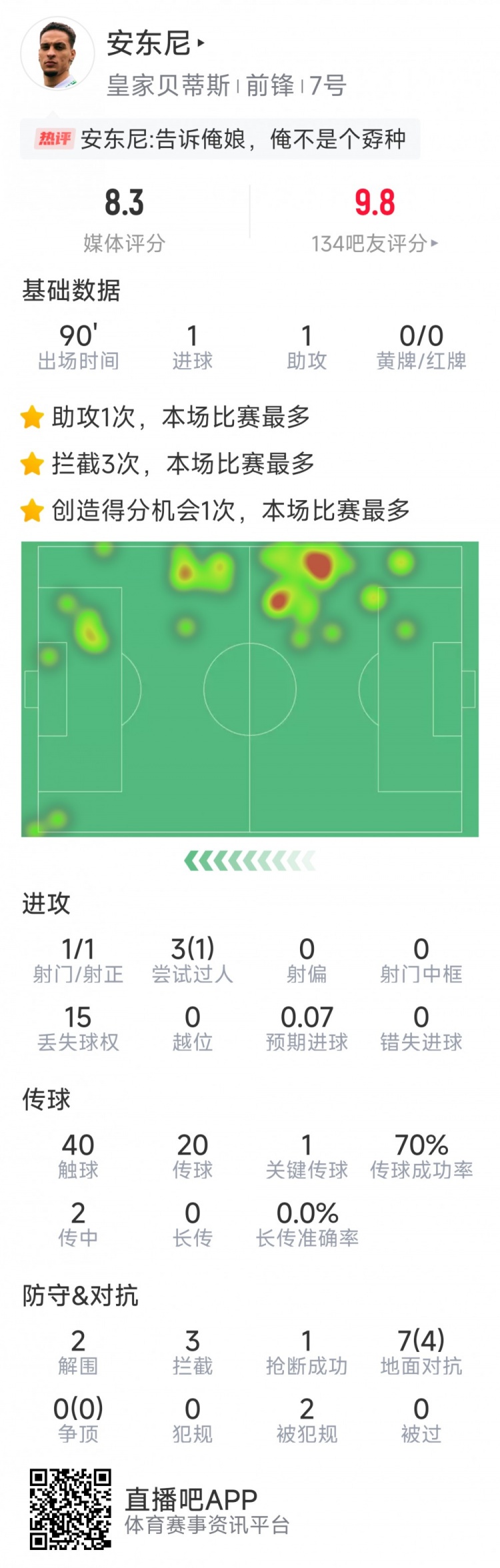 2025-03-14 12:00:53再度閃耀!安東尼本場(chǎng)數(shù)據(jù):傳射建功,1次射門即破門,1關(guān)鍵傳球