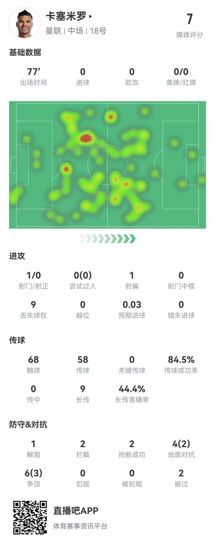 2025-03-14 12:01:07卡塞米羅本場11對抗6成功 3搶斷2攔截+4成功長傳 獲評7.0分