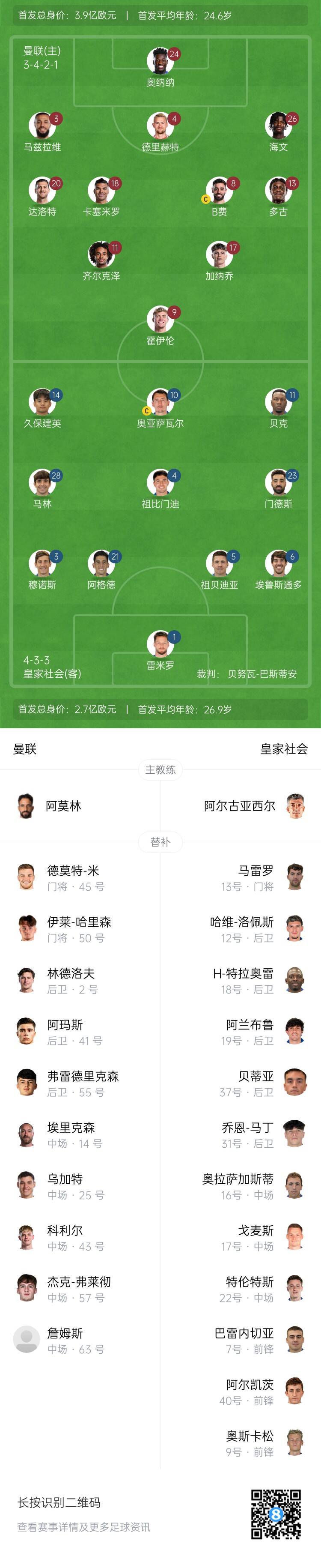 2025-03-14 12:01:33曼聯(lián)vs皇社首發(fā)出爐:B費(fèi)領(lǐng)銜 久保建英、多古、海文先發(fā)