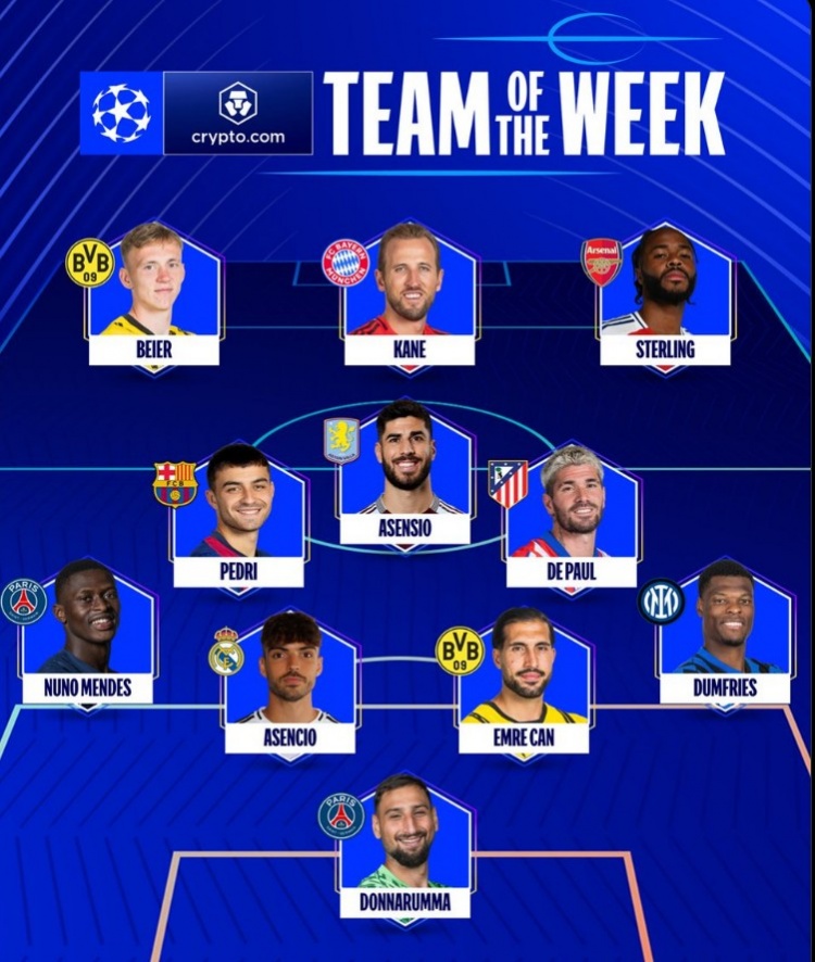 2025-03-14 12:01:56歐冠官方本輪最佳陣:凱恩領銜,佩德里、斯特林、多納魯馬在列