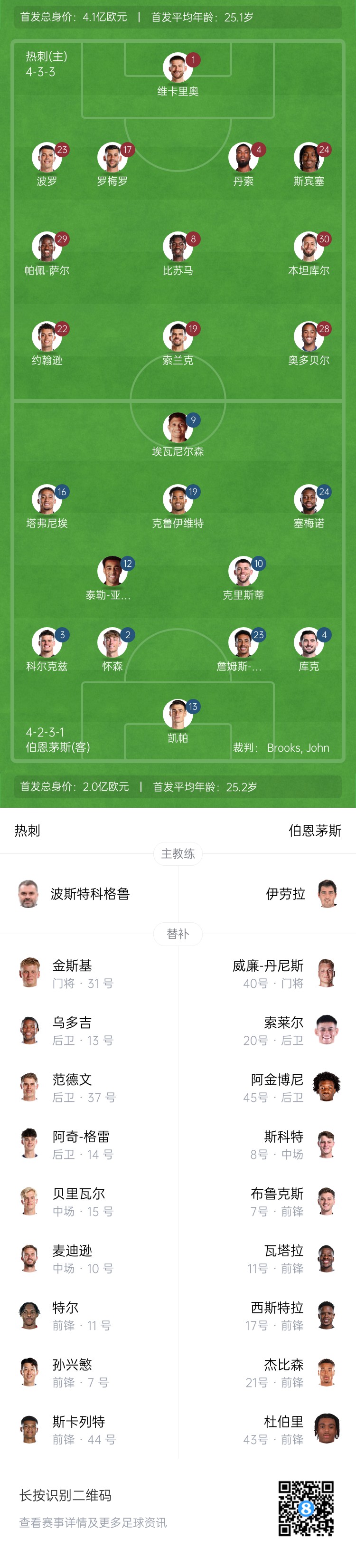 2025-03-09 21:08:32熱刺vs伯恩茅斯首發:索蘭克、約翰遜、羅梅羅先發,孫興慜替補