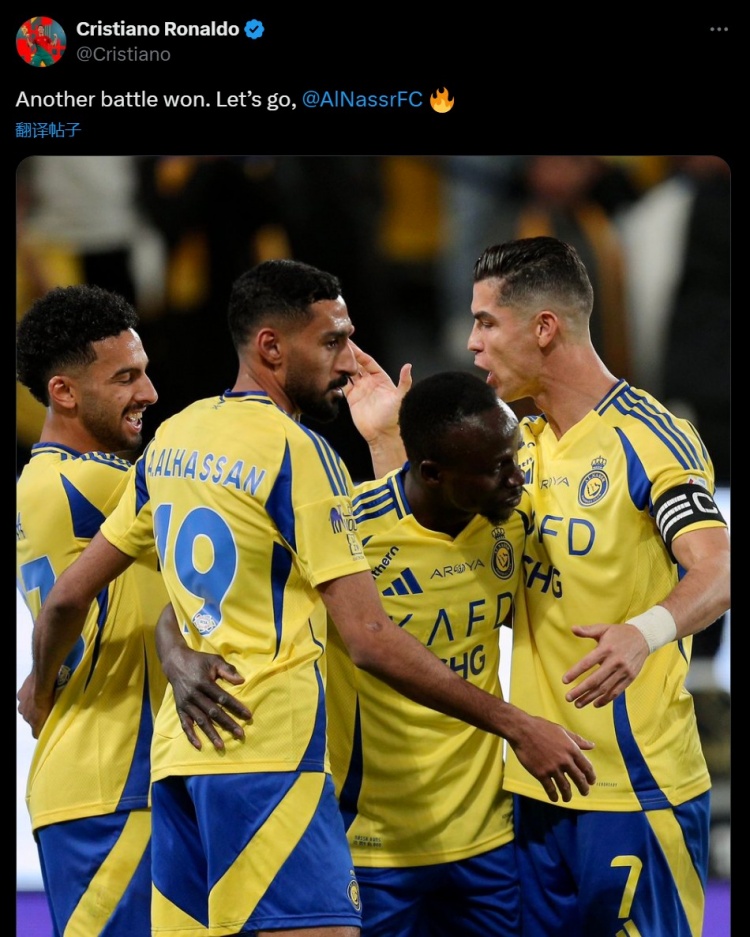 2025-03-15 06:00:04生涯928球!C羅社媒慶祝勝利:又贏下一場戰斗!讓我們繼續前進!