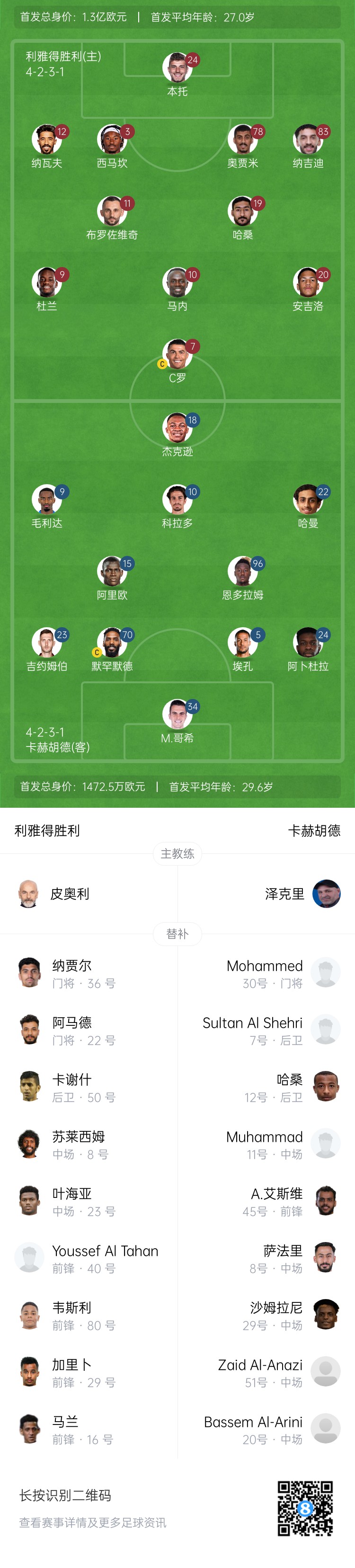 2025-03-15 06:00:40利雅得勝利vs卡赫胡德首發(fā):C羅、馬內(nèi)先發(fā),杜蘭出戰(zhàn)