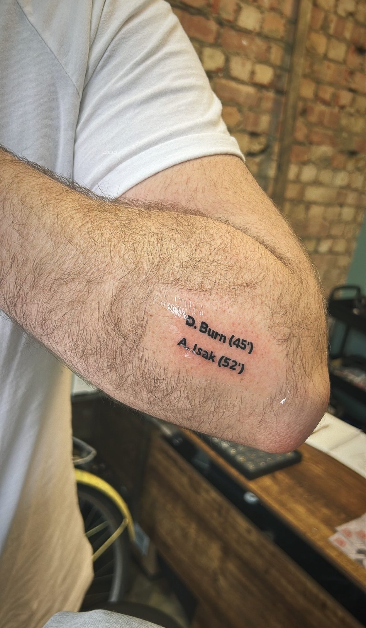 2025-03-18 18:00:2770年1次!聯賽杯奪冠后 紐卡球迷把丹伯恩和伊薩克姓名紋到手臂上