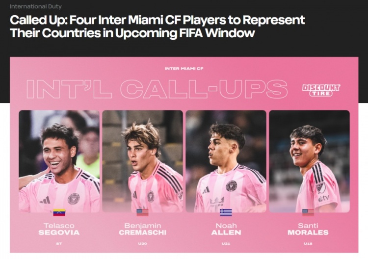 2025-03-19 18:01:08邁阿密國際四名球員獲國家隊征召,一人一線隊三人梯隊