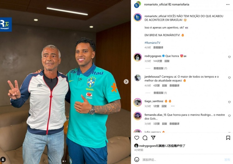 2025-03-19 18:01:14羅德里戈&拉菲尼亞&恩德里克做客電視節目,與羅馬里奧合影留念