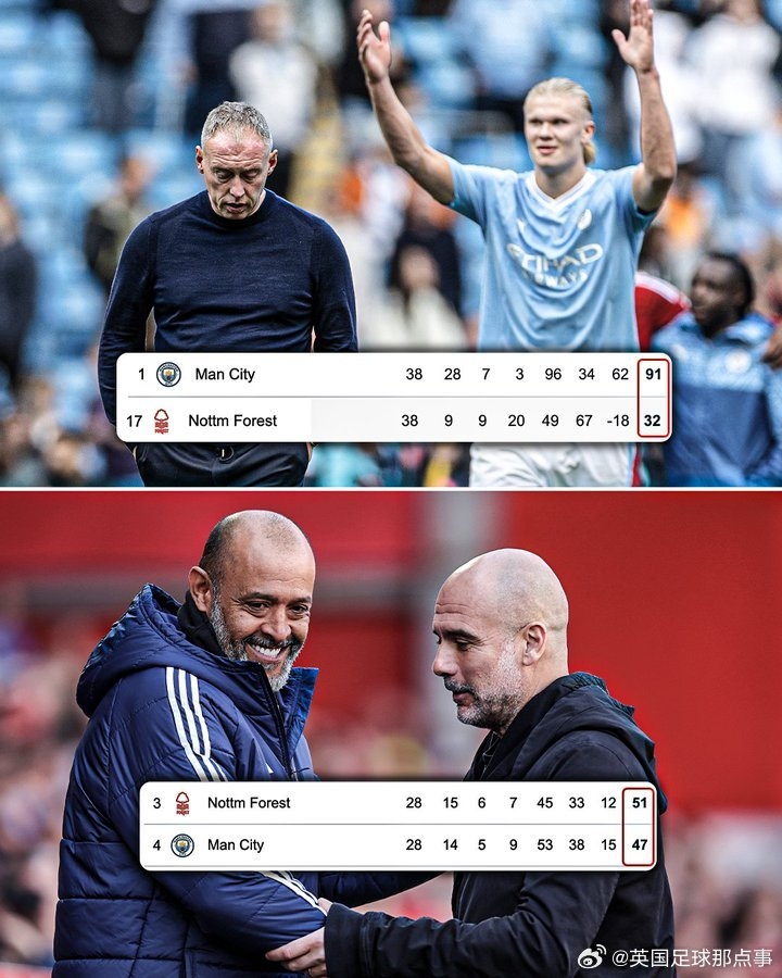 2025-03-09 21:10:00【巨大進步】上賽季曼城領先森林59分,現在森林領先曼城4分