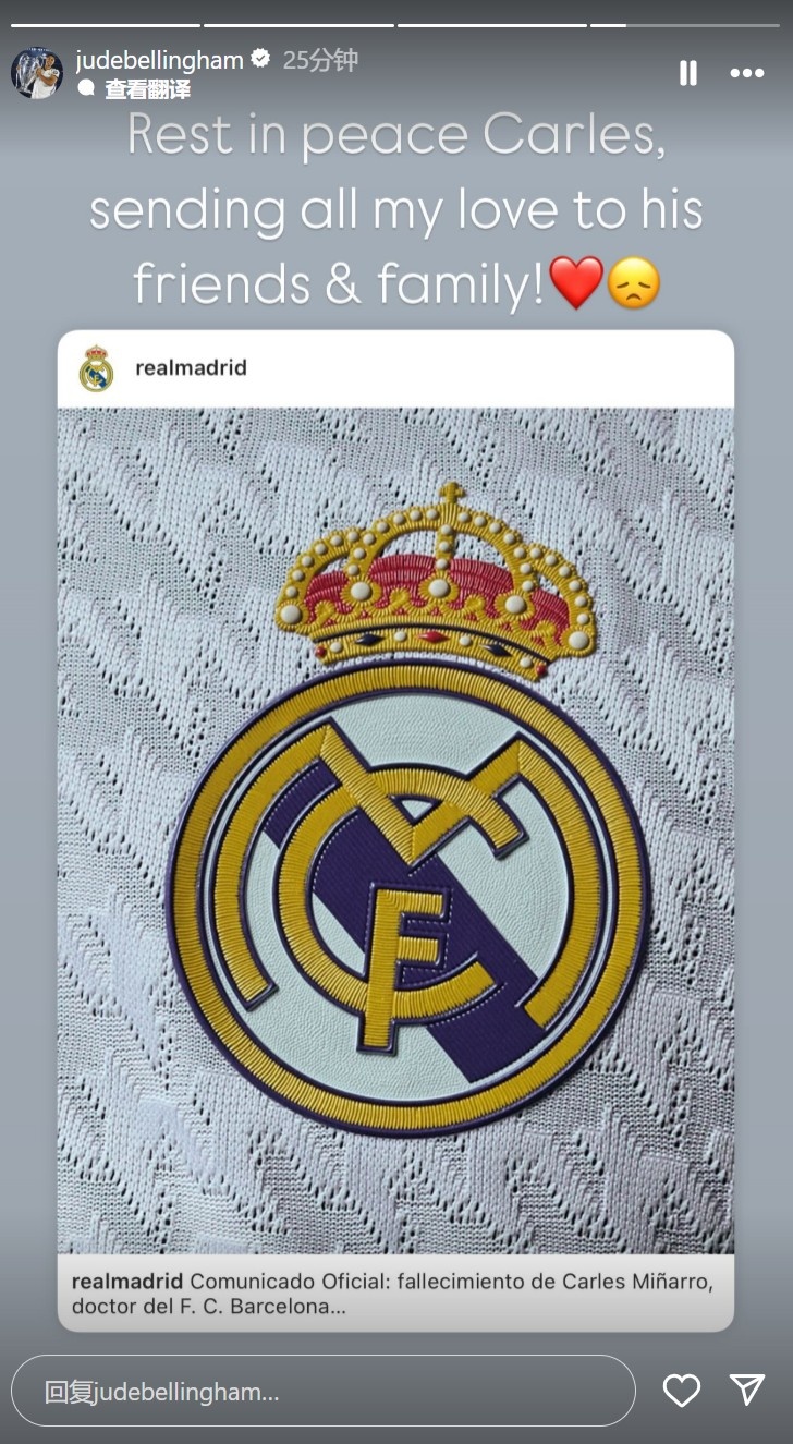 2025-03-09 21:10:20貝林悼念巴薩隊醫:R.I.P.卡萊斯,向他的家人朋友致以我所有的愛
