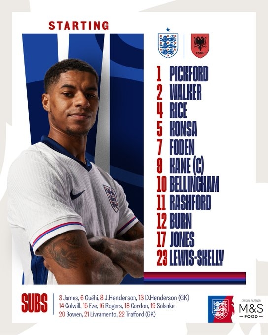 3月22日訊 世預賽歐洲區(qū)小組賽K組第1輪,英格蘭對陣阿爾巴尼亞的比賽即將打響。在賽前公布的陣容中,拉什福德將首發(fā)出戰(zhàn)。
