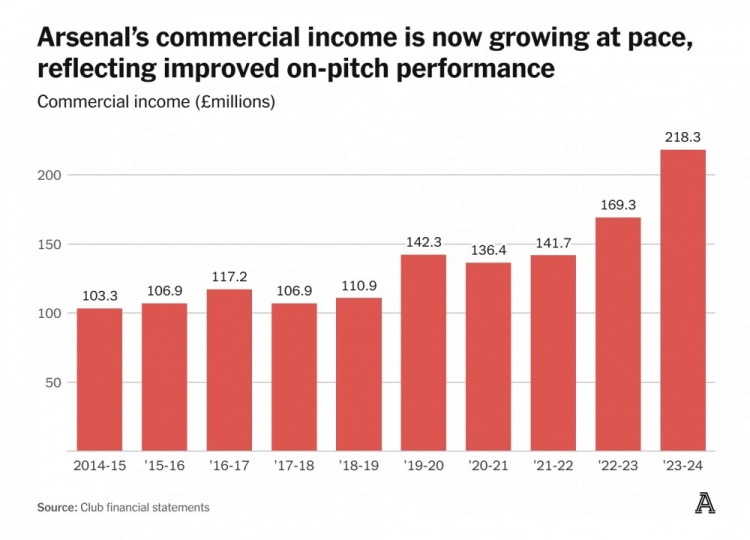 阿森納商業收入的增長,也是他們球場上表現改善的反映