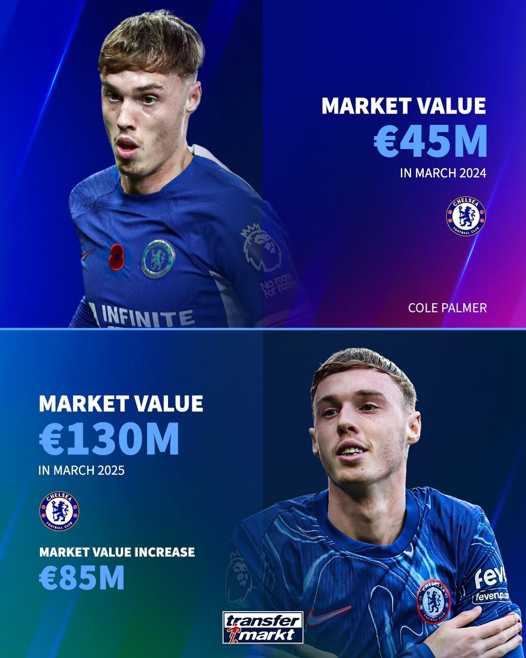 2025-03-23 18:01:10英超球員過去1年身價漲幅:帕爾默暴漲8500萬歐 馬爾穆什漲6000萬