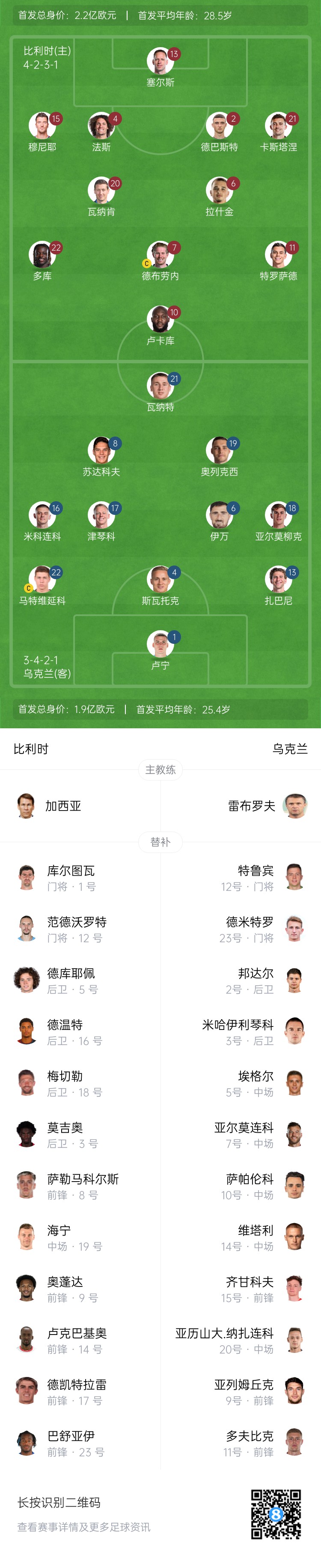 2025-03-24 06:00:43歐國聯-比利時vs烏克蘭首發:盧卡庫、德布勞內先發,多庫出戰