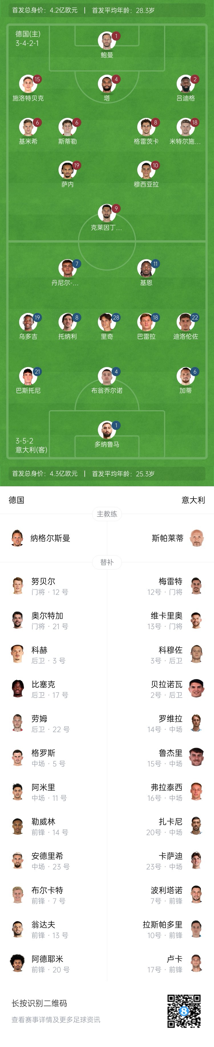 2025-03-24 06:00:52德國vs意大利首發:克萊因丁斯特、基恩先發,丹馬出戰