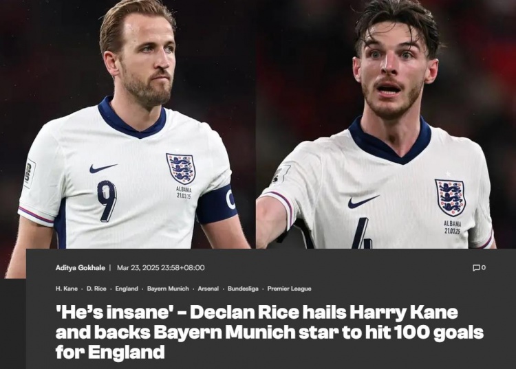2025-03-24 06:01:04賴斯:凱恩能達(dá)成英格蘭隊百球成就,他是一名偉大的隊長