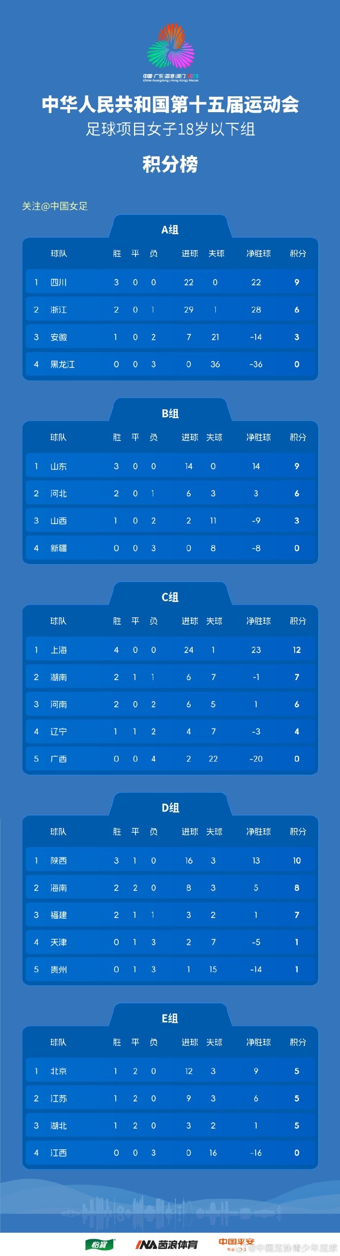 2025-03-24 18:00:38全運會女足U18資格賽(CD組)第5輪、(ABE組)第3輪賽果+積分榜