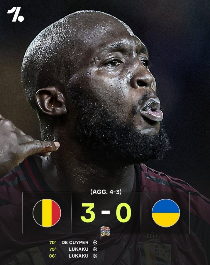 2025-03-24 18:05:32歐國聯升級賽次回合比利時3-0擊敗烏克蘭,盧卡庫梅開二度