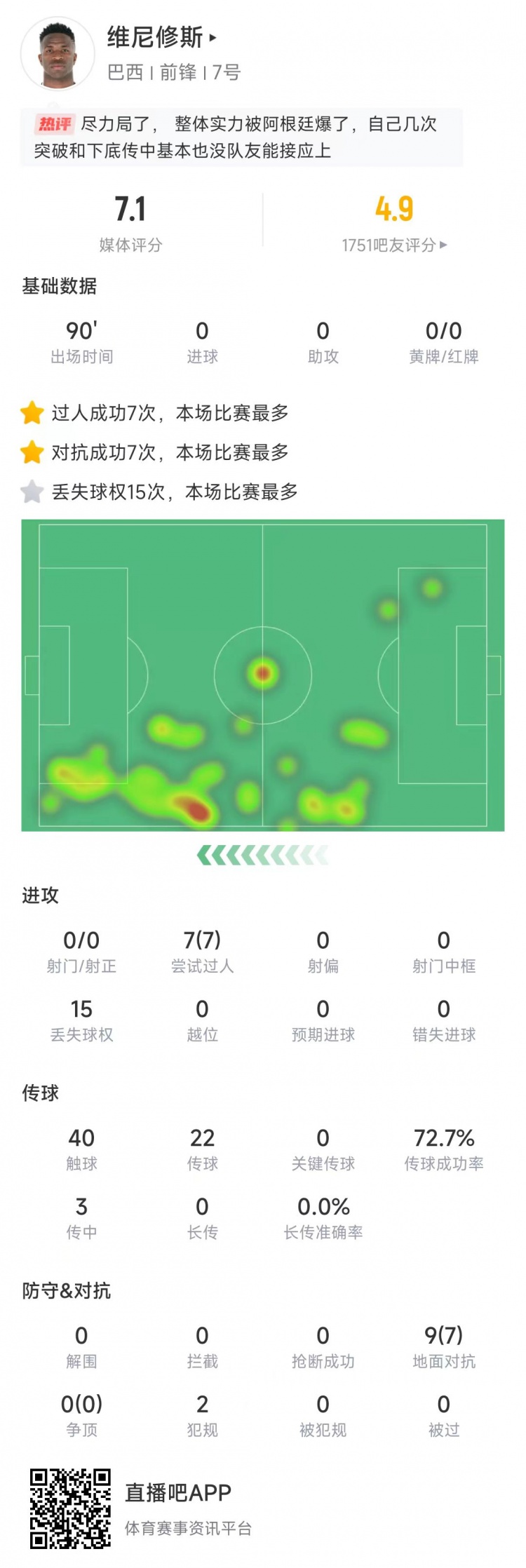 2025-03-26 12:01:45維尼修斯本場(chǎng)數(shù)據(jù):踢滿90分鐘0射門,7次成功過人全場(chǎng)最多